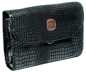 The Bric's Tri-Fold Traveler is must-have organizational item for those who travel frequently. The traveler measures 12 inches x 8 inches x 4 inches. This accessory is fully lined with polyester. The interior contains multiple zip pockets that are see-through to easily ensure all your belongings are where they should be. The interior pockets can fit all necessary toiletry accessories such as shampoo bottles, hygiene accessories, and even a small hair dryer. The traveler contains metallic snap closures and includes a hanging hook. Made in Italy.