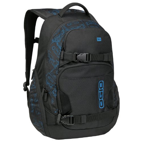 Ogio Lucas Pack features padded laptop compartment, skateboard carry straps, mediavaluables pocket, dual side beverage holsters and padded back panel.