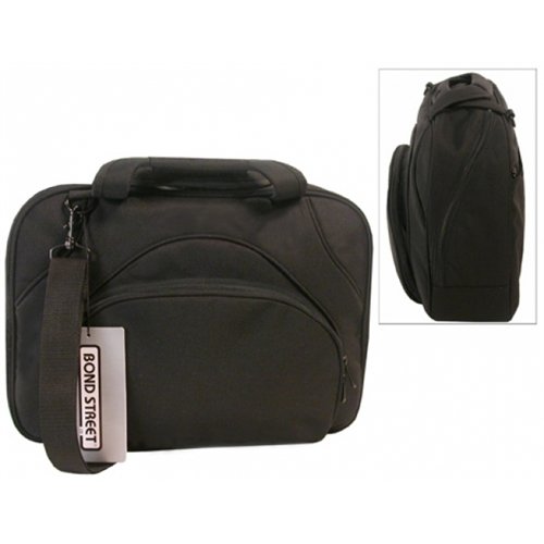 466309BLK Features: -Eco-Friendly with 51pct recycled surface material and non-toxic backing.-Comfortable and wide carrying handles and rear luggage slider.-Exterior front zippered pocket has full organizer including key fob.-Removable adjustable shoulder strap. Construction: -Constructed of nylon. Dimensions: -Zippered entry design enables case to hold from small to larger 17.3'' screens (up to 16.3'' Wide).-Dimensions: 12.5'' H x 17.25'' W x 4.75'' D.
