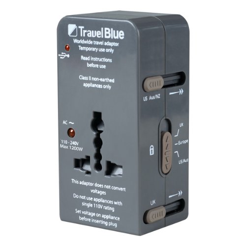 The Detailed Description of Travel Blue All in One Worldwide Travel Adapter with USB, Gray, One SizeFeatures