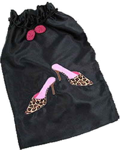 - Black polysatin shoe bag with pom pom closure